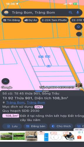 108m2 Đất Mặt Tiền Kinh Doanh Sông Trầu Trảng Bom - 1.35 Tỷ