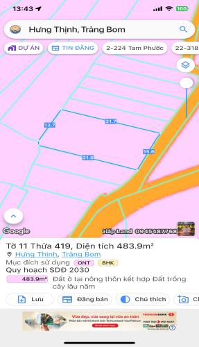 483.9m2 Đất Cách QL1A 300m Hưng Thịnh Trảng Bom - Giá 3 Tỷ