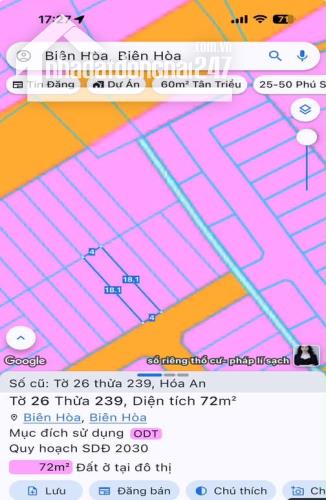 72m2 Đất Cách Công Ty Pouchen 500m P.Hóa An Cũ - 2.48 Tỷ