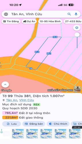 bán 1000m² đất tại xã tân an ,vĩnh cửu giá 1 tỷ 4