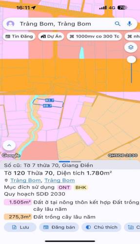 bán 1800m đất có 300m thổ cư xã trảng bom .,giá 3 tỷ 7