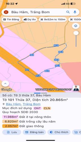 bán 20000m đất có 300m thổ cư xã bàu hàm giá 28 tỷ