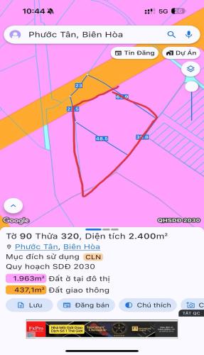 BÁN 3300M2 ĐẤT TẠI PHƯỚC TÂN - TP BIÊN HOÀ. SHR. 33 TỶ. LH:0933449988.