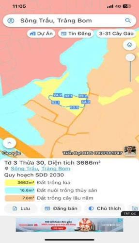 bán 3686m đất sổ riêng xã trảng bom , giá 1 tỷ 9