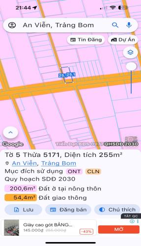 bán đất ấp 4 xã an viễn ,trảng bom dt 255m giá 2 tỷ 6