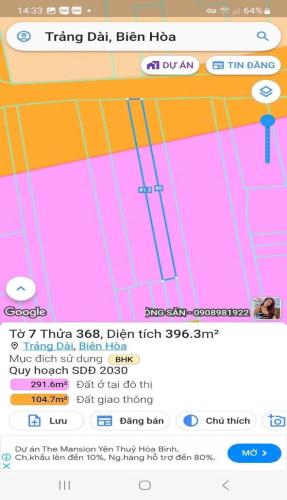 bán đất chợ quãng thắng , phường trảng dài .sổ riêng dt 400m² giá 6 tỷ
