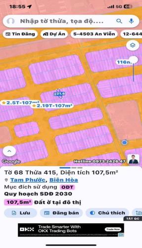 bán đất sổ riêng thổ cư phường tam phước dt 107m giá 2 tỷ 550
