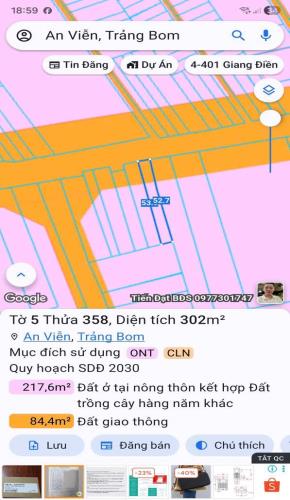 Bán đất sổ riêng thổ cư xã An Viễn huyện Trảng Bom dt 302m giá 4 tỷ 5