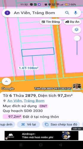 bán đất thổ cư ấp 3 an viễn ,trảng bom dt 97m giá 890 tr
