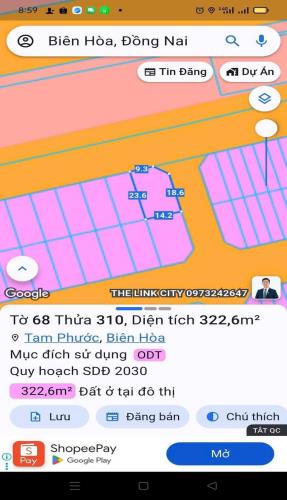bán đất thổ cư kdc tín nghĩa ,phường tam phước dt 322m giá 5,2 tỷ