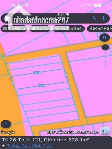 bán đất thổ cư phường trảng dài dt 208m giá 5 tỷ 6