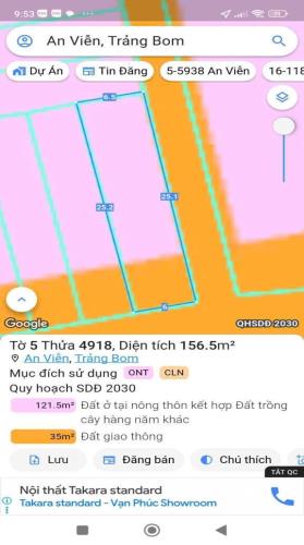 Bán đất thổ cư tại xã An Viễn huyện Trảng Bom dt 156m² giá 1 tỷ 690