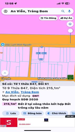 bán đất thổ cư xã trảng bom dt 215m giá 4 tỷ 9