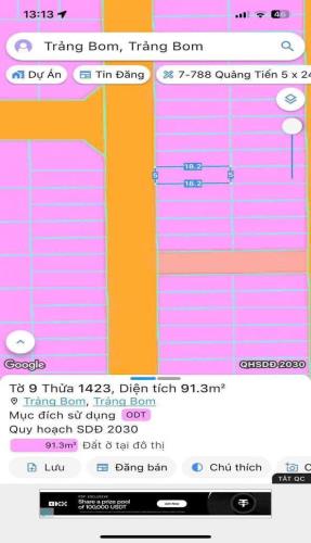 bán đất thổ cư xã trảng bom dt 90m giá 1 tỷ 9