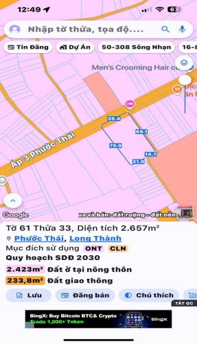 Bán gấp 2645m2 có 300m thổ Cư Phước Thái , long thành giá 21 tỷ