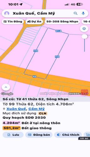 Bán gấp 4700m2 xuân quế cẩm mỹ mt đường cầu Mên goá 3tỷ9/1 sào