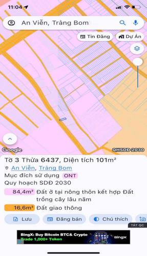Bán gấp đất thổ cư an viễn trảng bom 100m2 giâ 1tỷ 195