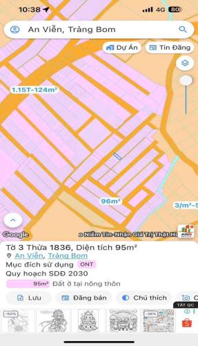 Bán gấp đất thổ cư an viễn trảng bom 95m2 giá 750tr