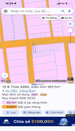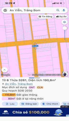 Bán gấp lô đất góc 2 mt an viễn trảng bom 264m2 giá 2tỷ900