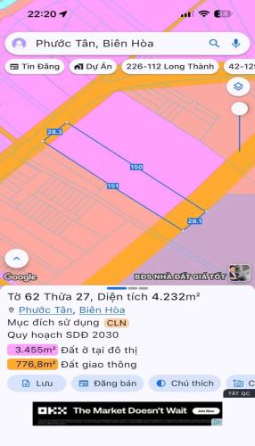 Bán gấp lô đất sào mt đinh quang ân phước tân 12.603m2 giá 4tr5/1m2