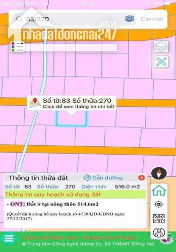 Bán gấp lô đất sổ riêng tam phước 516m2 giá 4tỷ400