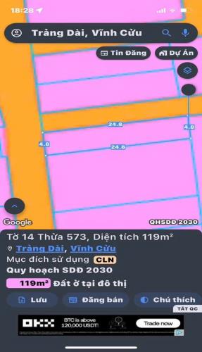 Bán gấp lô đất sổ riêng thổ cư trảng dài 119m2 giá 3tỷ670