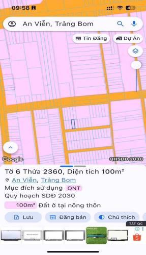 Bán gấp lô đất thổ cư an viễn trảng bom 100m2 giá 950tr