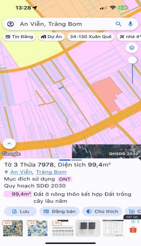 Bán gấp lô đất thổ cư an viễn trảng bom 100m2 giá 980tr