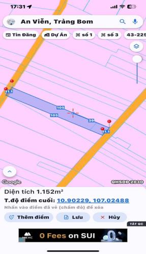 Bán gấp lô đất thổ cư an viễn trảng bom 1150m2 giá 3tỷ300