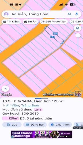 Bán gấp lô đất thổ cư an viễn trảng bom 125m2 giá 920tr