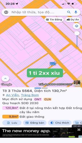 Bán gấp lô đất thổ cư an viễn trảng bom 130m2 gái 1tỷ230