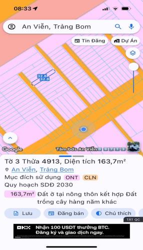 Bán gấp lô đất thổ cư an viễn trảng bom 165m2 giá 1tỷ390