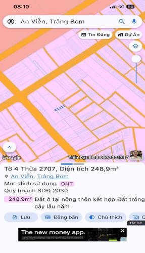 Bán gấp lô đất thổ cư an viễn trảng bom 252m2 giá 2tỷ350