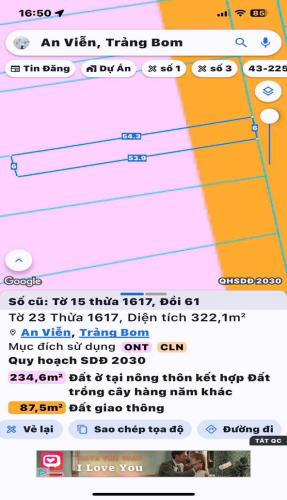 Bán gấp lô đất thổ cư an viễn trảng bom 322m2 giá 3tỷ500