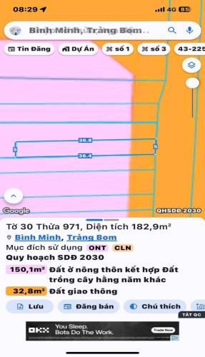 Bán gấp lô đất thổ cư bình minh trảng bom 183m2 giá 4tỷ500