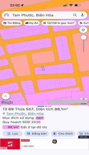 Bán gấp lô đất thổ cư kdc tín nghĩa tam phước 98m2 giá 1tỷ980