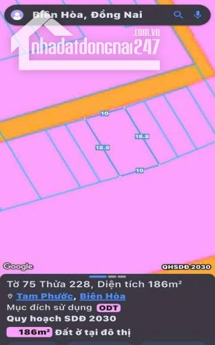 Bán gấp lô đất thổ cư ph tam phước 188m2 giá 2tỷ400