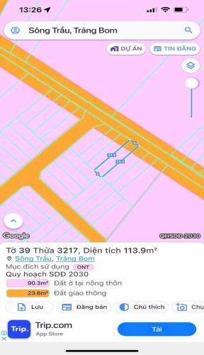 Bán gấp lô đất thổ cư sông trầu trảng bom 113m2 giá 1tỷ2