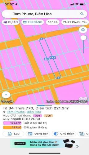 Bán gấp lô đất thổ cư tam phước 221m2 giá 2tỷ200