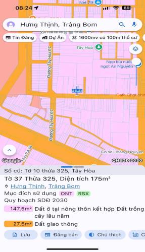 Bán gấp lô đất thổ cư tây hoà trảng bom 175m2 giá 1tỷ750