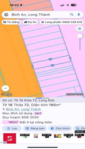 Bán gấp lô đất thổ cư xã bình an long thành 180m2 giá 6tỷ800
