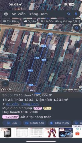 Bán gấp lô đất thổ cư xã đồi 61 trảng bom 1234m2 giá 3tỷ