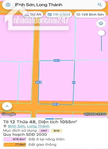 bán lô đất dt 1055m² có thổ cư xã bình sơn , long thành giá 9,2 tỷ