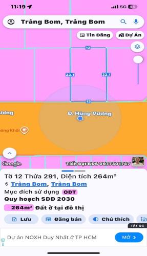 bán lô đất thổ cư kp 3 xã trảng bom dt 90m giá 2 tỷ 9