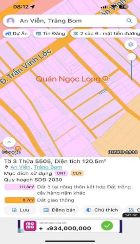 bán lô góc tại xã an viễn , trảng bom dt 120.mgias 1,2 tỷ