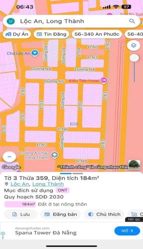 Cần bán lô đất đẹp D2D Lộc An, Long Thành, dt 184m² thổ cư