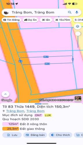 Còn 1 lô 150m2 tại Ấp 2 Sông Trầu - Trảng Bom đát thổ cư giá 850tr