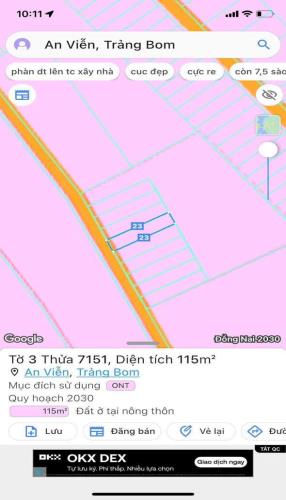 đất thổ cư xã an viễn ,trảng bom dt 115m² sổ riêng giá 1 tỷ 1